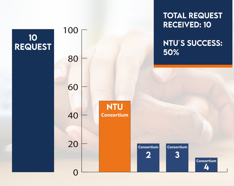 t has been one year since SEA Lot 13 started. We are incredibly proud to reflect on a year filled with success, growth, and strong collaboration. NTU International is delighted to share that we have achieved an outstanding winning rate of over 50% in competition with three other consortiums, making us the most successful consortium of Lot 13.